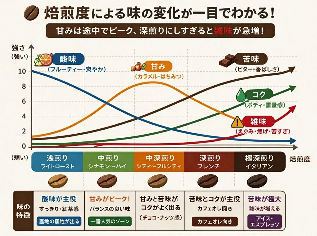 浅煎りと深煎りの違いは、